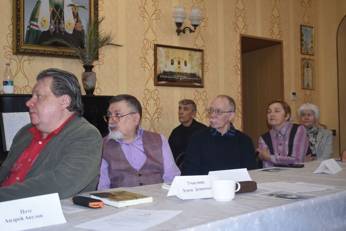 Эта животрепещущая тема не могла не найти отклик в душе композитора Игоря Старостина. Родниковцы с удовольствием прослушали его новые романсы «Верба» на стихи Юлии Вихаревой и «Пасха в Петербурге» на слова автора Игоря Северянина. Приятным сюрпризом для присутствующих стало музыкальное прочтение стихотворения Любови Самойленко «Петербургские встречи».